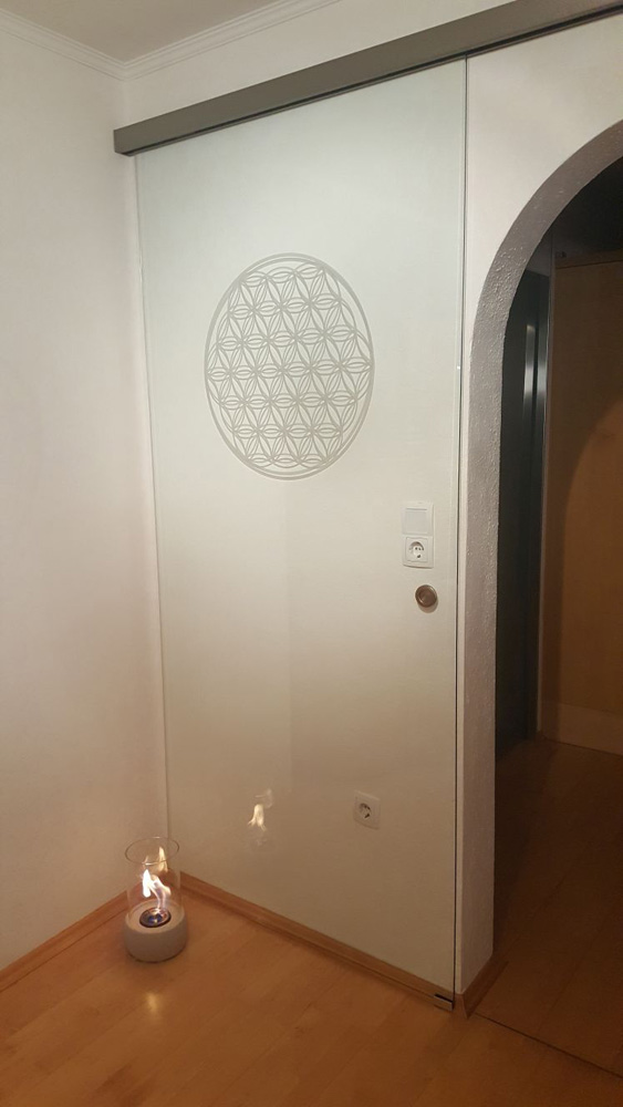 Mit Sandstrahlen bearbeiten wir Glas (z. B. Spiegel) und verleihen der Oberfläche ein mattes Erscheinungsbild mit schönen Mustern.